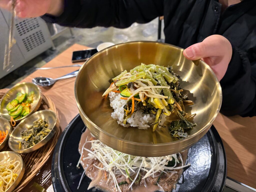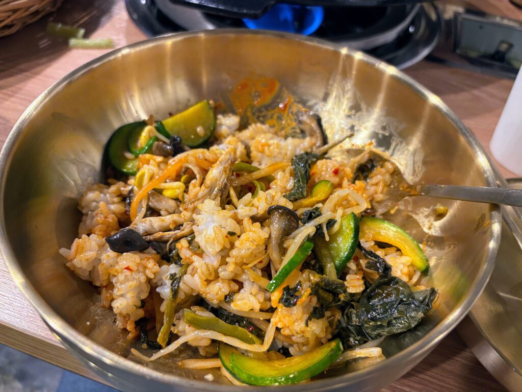 エホバク(ズッキーニ)のナムル大根のキムチ大根の葉っぱの部分とか、具材の味付けが全部美味しくて感動。