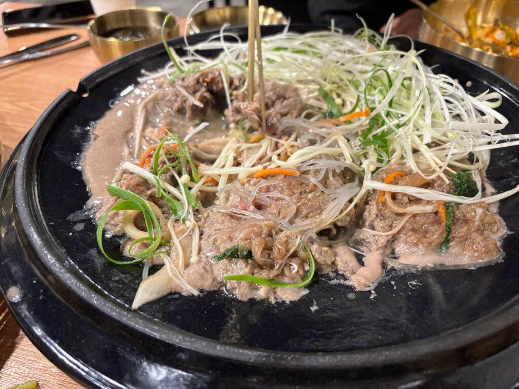 甘辛い味付けのお肉はやわらかくて、ビビンバと一緒に食べると相性抜群。