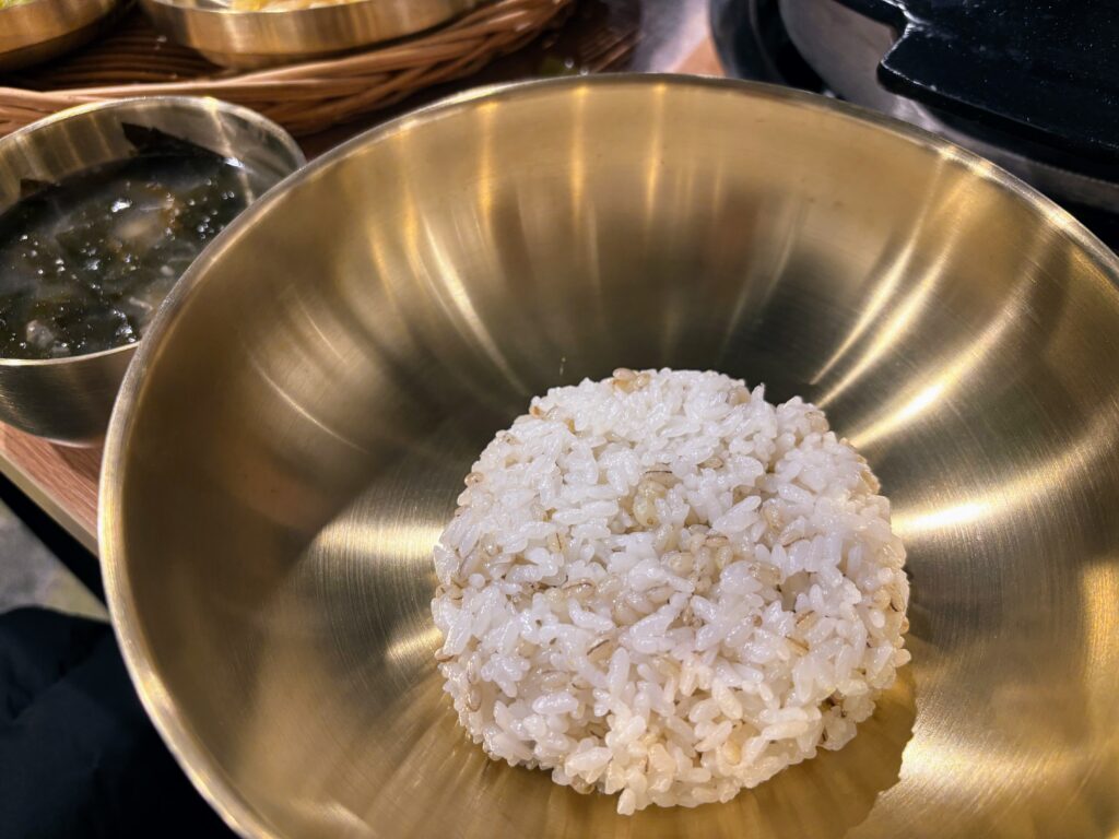 韓国食堂らしい器にご飯だけが盛られて出てきます。
